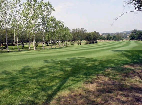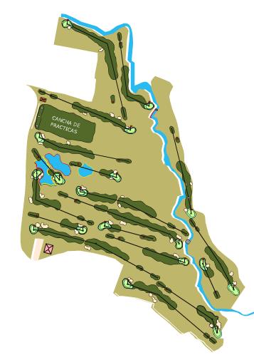 El campo de golf se encuentra encajado en el valle de ribera que forma el Río