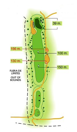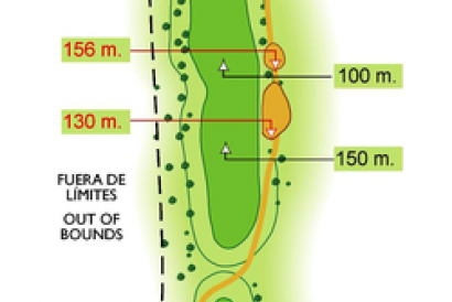 Par cuatro corto en subida, con un gran green y cuya dificultad está en no poder apreciar en el 2º golpe la posición de la bandera.
