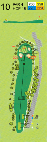 La segunda vuelta se inicia con el hoyo aparentemente más fácil del recorrido, hoyo 10, aunque si no se juega con cabeza es fácil hacer un bogey.