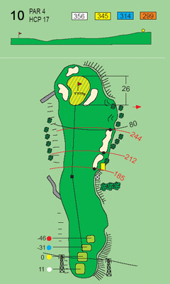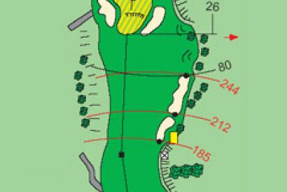 Par 4 con dos bunkers a la derecha en la caída del driver. Green con una entrada muy estrecha rodeado de tres bunkers y que exige entrar por alto.