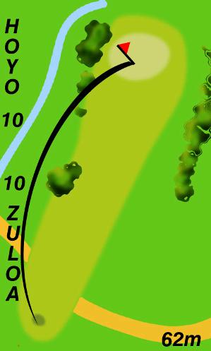Cuenta con una salida sobre elevada, que facilita el tiro al geen. Su trayectoria es ascendente y ligeramente ladeada a la derecha con una distancia de tiro de 62 metros. Su orientación es este-oeste, y tiene el atractivo que sirve de hoyo de comienzo de un supuesto segundo recorrido alternativo de 9 hoyos –del 10 al 18-, y cercano a la Casa club.