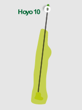 Drive, madera 5 ó hierro 2. Amplio green con dos alturas, plano inclinado y protegido por bunkers posteriores antes del fuera de límites y 2 anteriores a derecha e izquierda.