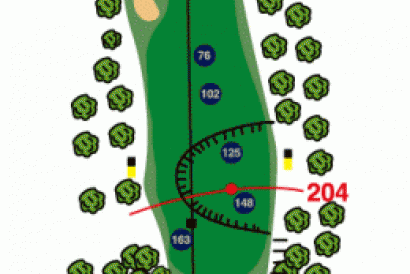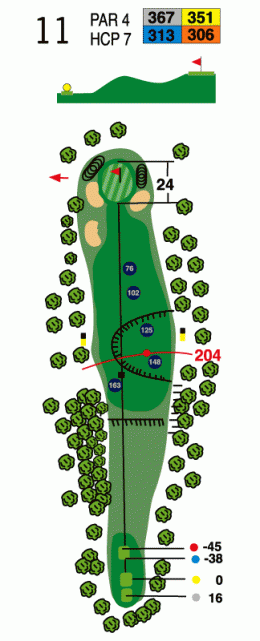 Par 4 de 354 metros desde barras amarillas y 307 metros desde barras rojas. Hcp 7. salida ciega con pronunciada pendiente, cuesta arriba. Green pequeño, bién protegido por 3 bunquers, sin excesivas caidas. Salida con Driver, buscando la parte izquierda de la calle, para despues buscar el Green con un hierro corto 8, 9 jugadores de pegada y hierros largos y madera, jugadores más cortos de pegada.