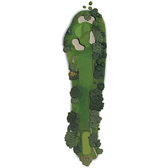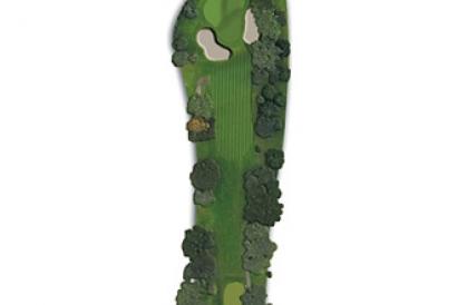 Hoyo corto, en ligera subida, pero muy defendido por los propios árboles que delimitan el hoyo, por dos bunkers y fuera de límites por la parte izquierda del green que consta de tres plataformas lo que complica mucho el putt.