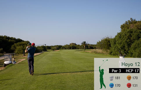 Par tres largo con entrada a green muy estrecha debido a dos bunkers situados al principio a ambos lados. El green es enorme, por lo cual presenta la posibilidad de variar continuamente la posición de bandera, siendo muy complicada la elección del palo.