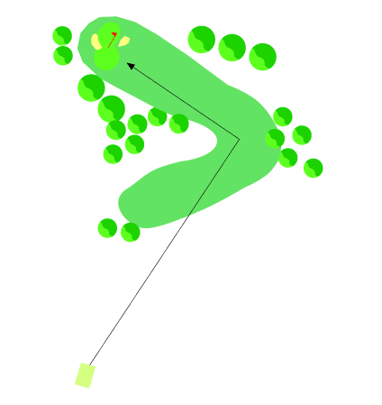 Cuidado con el golpe de salida que cruza la calle del 12 procurando evitar el bosque de la izda. Mejor abrirse que cerrarse. Green en alto con gran talud y bunker a la izda y fuera de límites por detrás.