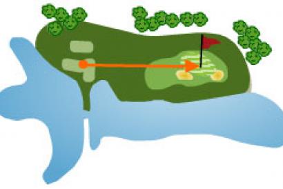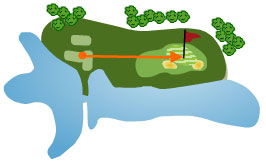 Es el cuarto par 3 y el más sencillo de todos, la única dificultad que tiene son un bunker por la derecha, otro al fondo del green y un obstáculo de agua por el lado derecho que apenas entra en juego. La izquierda, está protegida por una pared natural de piedra.