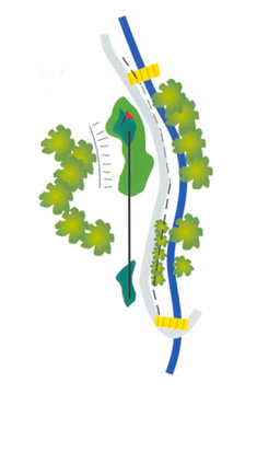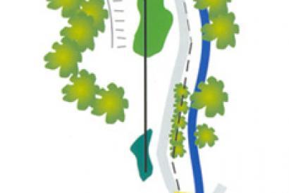 Otro par tres que requiere un tiro muy preciso, ya que toda la parte derecha hasta el green es un obstáculo de agua lateral. Tanto el golpe corto como el largo están bastante penalizados. Solamente los golpes por la izquierda podrán proporcionarnos un "golpe de fortuna" según la época del año. Tendremos que colocar la bola en el green o el par se convertirá en una tarea complicada.