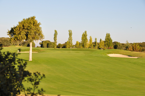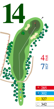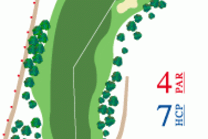 Apoyar salida hacia la izquierda de la calle. Green en alto con dos plataformas y defendido con bunkers a ambos lados.
