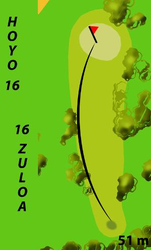 De 51 metros de distancia, cuenta con un green pequeño para recibir la bola, y es un hoyo que flanquea separado por frutales, toda la parte superior de la cancha de prácticas, requiere un tiro corto y técnico.