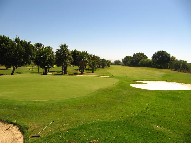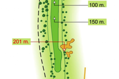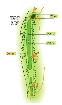 Comparte green con el hoyo 14. Green protegido y difícil.