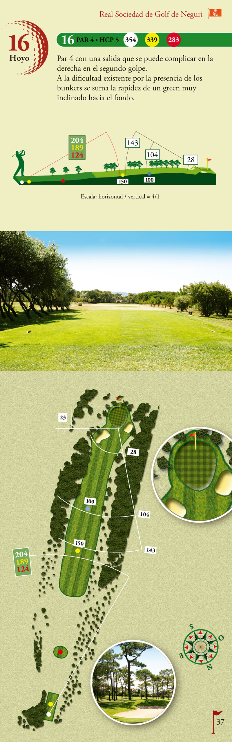 Par 4 con una salida que se puede complicar en la derecha en el segundo golpe. A la dificultad existente por la presencia de los bunkers se suma la rapidez de un green muy inclinado hacia el fondo.