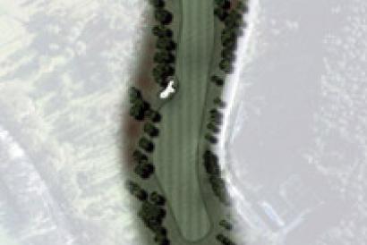 El hoyo 18 es uno de los más complicados del campo. Dibuja un suave dog-leg a la derecha, lo que dificulta el golpe de salida.