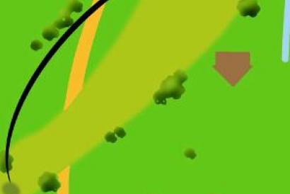 Tiene su salida entre frutales, y con una distancia de 90 metros se llega al green, situado bajo un majestuoso pino. El green está protegido por una depresión al fondo y a la izquierda, y la calle tiene la dificultad de superar una zona húmeda –obstáculo de agua- a la izquierda hacia donde se inclina el terreno. Es una trayectoria descendente, pero un hoyo muy satisfactorio si se logra el par.