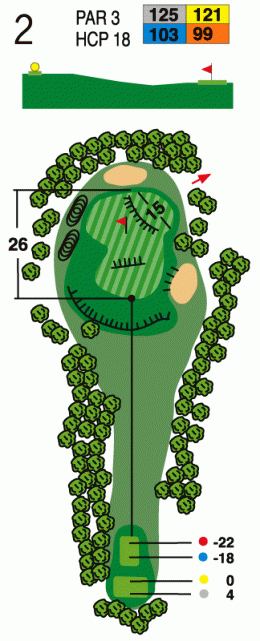 El hoyo más corto del recorrido, cuya dificultad está en su green. Este tiene doble plataforma y caídas que lo hacen complicado. Además, el green se encuentra protegido por un bunker en su lado derecho.