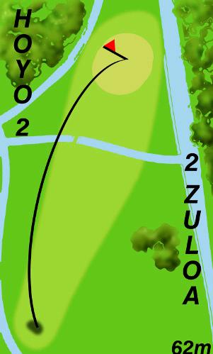 Comienza a la izquierda del green del hoyo 1 y al lado de una acequia natural de la finca. Su trayectoria, de 62 metros de distancia, es ligeramente diagonal hacia la derecha, en una orientación norte y también en dirección al hayedo. Su green, descansa entre las hayas y el río en una pequeña zona de robles Tiene como tee de salida un punto dentro del propio hayedo justo después de cruzar el puente que nos adentra en él. Este hoyo, de 53 metros de recorrido, cuenta con un tiro ligeramente dirigido a la derecha, en di