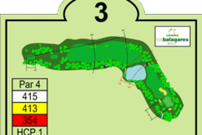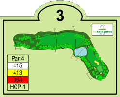 Es un par cuatro de 415 metros en dogleg a la derecha. Es el más largo de su par del campo, siendo el handicap uno del recorrido. Tiene calle común con el hoyo 16, muy de estilo americano. Sobre la caída del primer golpe hay dos lagos pequeños a la derecha y con un golpe de 190 metros se puede ver el green para el segundo impacto, que tiene que volar el lago más grande del campo. El quiebro del dogleg está 230 metros del tee. El green en ligera subida esta defendido por un bunker de hierba, frontal izquierda y, dos bunker de arena a la derecha y fondo.