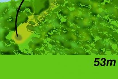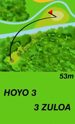 Tiene como tee de salida un punto dentro del propio hayedo justo después de cruzar el puente que nos adentra en él. Este hoyo, de 53 metros de recorrido, cuenta con un tiro ligeramente dirigido a la derecha, en dirección al límite del campo, en una orientación este-oeste, con un pequeño green ubicado entre el río y una zona húmeda, dentro de un área sombría de robles. La bola no puede tener un vuelo alto, puesto que ha de pasar por una ventana natural que conforman las ramas de las hayas y sobre pasar el río, Es considerado el hoyo más exigente del recorrido Da comienzo a su recorrido delante de el green del hoyo 3, y en una trayectoria de ascensión paralela al lindero de la finca. Cuenta con un recorrido de 70 metros, en una orientación este-oeste, con un green que tiene la dificultad de ser muy pequeño. Obliga a un tiro recto y preciso