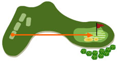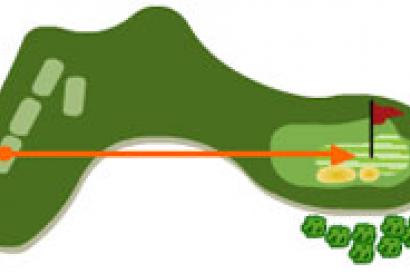 Se presenta como el par 3 más largo, con un espectacular golpe de arriba abajo. La bola con viento, es muy difícil mantenerla recta y jugamos a un green con dos bunkers que lo protegen por la derecha. Hay que añadir que es un green estrecho y muy largo, con una caída muy pronunciada por la izquierda de green.