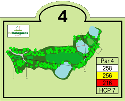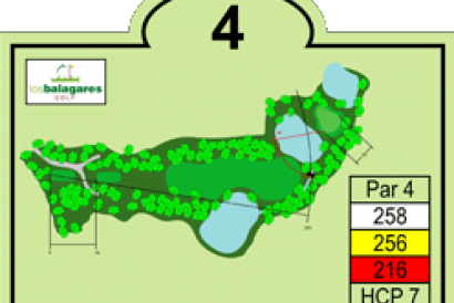 Un par cuatro de 258 metros, dogleg izquierda. Es el más corto de los pares cuatro, pero debe jugarse con estrategia y precisión. El primer golpe hay que colocarlo en calle entre dos lagos a izquierda y derecha y un arroyo al fondo. Para el segundo golpe, el green, que es pequeño, está defendido por dos lagos muy próximos, uno al frente y otro de fondo, con gran belleza y dificultad.