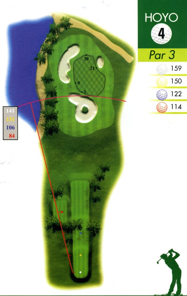 Con bastante desnivel pero carente de gran dificultad, se le conoce como el hoyo del “huevo frito” por su peculiar bunker.