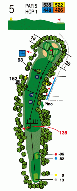Su green es el más complicado del campo y se encuentra protegido por un bunker en su parte izquierda. Además, este green tiene tres desniveles, que según esté colocada la bandera dificultan enormemente el putter. Hay fuera de límites en toda la parte derecha y fondo de green.Rogelio Echeverria (Maestro)