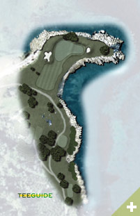 Punta Cabreira, el hoyo más famoso del campo. Hoyo corto , con green en isal, lo que ofrece unas vistas espectaculares de la Ría de Arosa. Green de amplias dimensiones, con diferente posición de bandera para cada vuelta. Hay que sobrevolar el mar con el golpe de salida, con un green de generosas dimensiones.