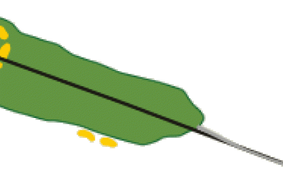 El green no tiene dificultad. Consejos: Se utilizará el drive y en el segundo golpe un hierro 9 -7. Este hoyo se cruza con el 1 por lo que hay que tener precaución.