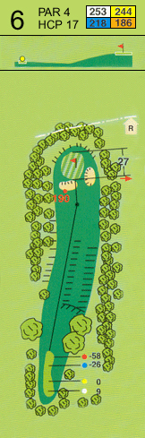 El Hoyo 6, es un par 4 corto pero con una elevada pendiente hasta un green bastante plano, que se encuentra protegido por dos bunkers frontal y en su lateral derecho. Aunque es el hándicap más fácil del campo, no por ello carece de dificultad.