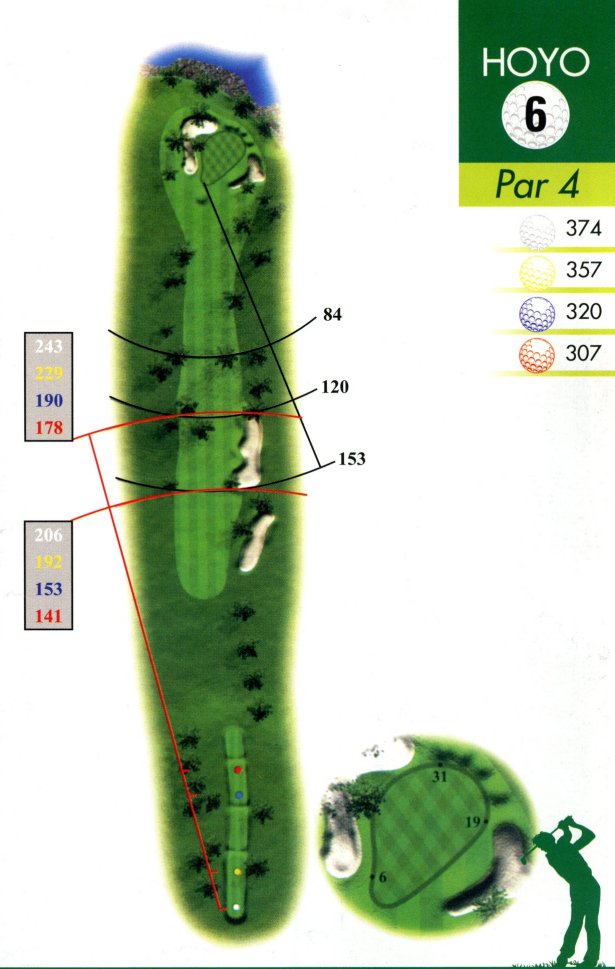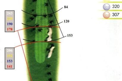 Dos grandes Bunkers defendiendo su salida y dos encinas en la calle ponen cierto picante a este par 4.