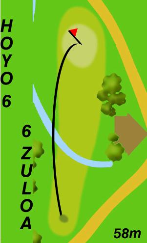 Arranca a pocos metros a la derecha del green del hoyo 5 con un tiro de 58 metros en dirección sur, quedando el green de este hoyo a la derecha del canal natural de drenaje. Es un tiro que debe volar por un obstáculo de agua, tiro corto sin posibilidades de error, pero con green generoso.