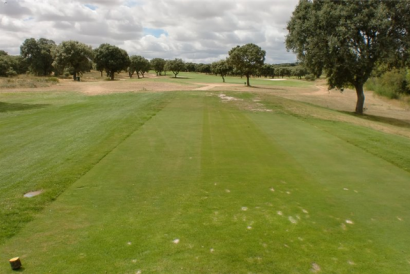 Hoyo con dog-leg a la izquierda, abundantes encinas a derecha e izquierda, y su green posee bastante inclinación.