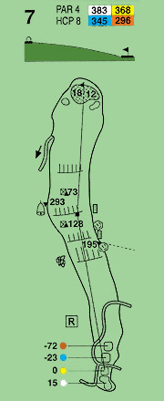 Golpe de salida ciego, hace un pequeño dogleg a la derecha. Existe fuera de límites a la derecha del hoyo. El segundo exige mucha técnica, se juega cuesta abajo, lo que dificulta sobremanera la parada de la bola en un green ancho pero con poca profundidad.