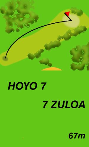 Se sitúa a la izquierda de este green último, con 67 metros de recorrido, cuya trayectoria es ascendente con una orientación este-oeste. Tiene una pared de árboles frutales a la izquierda, con un gran talud a la derecha con un green similar al hoyo 4, lo cual vuelve a exigir concentración en el golpe