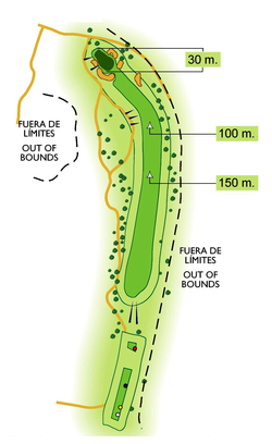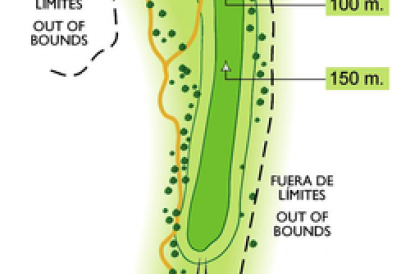 Par cinco estrecho en la caída del 2º golpe con fuera de límites a ambos lados y con el rough problemático por la derecha.