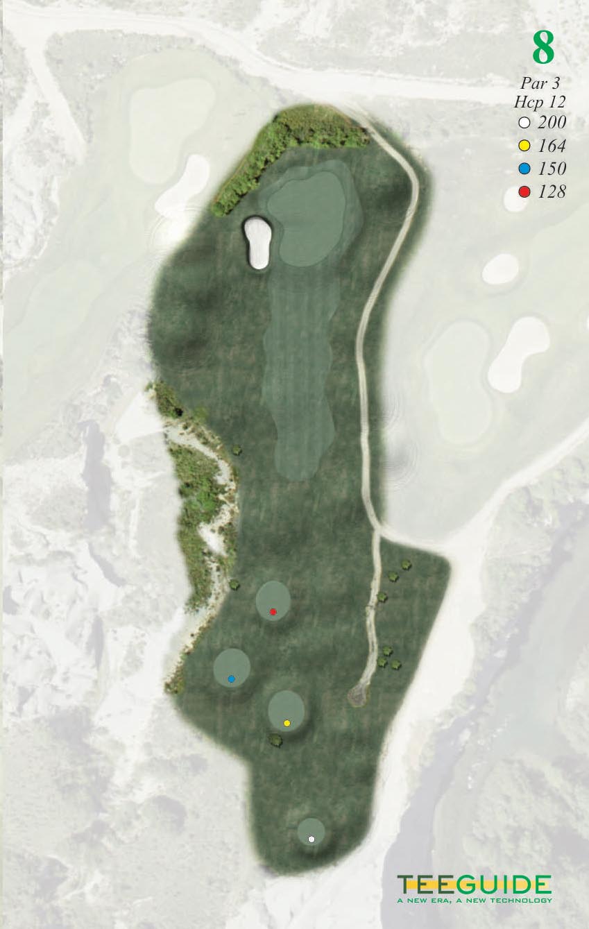 El viento jugará un papel importante en la elección del palo de salida. Green amplio con un bunker protegiendo la entrada por la parte izquierda.