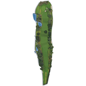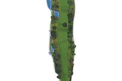 Los golpes largos de salida se verán afectados por un gran árbol en el centro de la calle y un lago en la parte izquierda. El green está protegido en su parte frontal-derecha por un gran bunker.