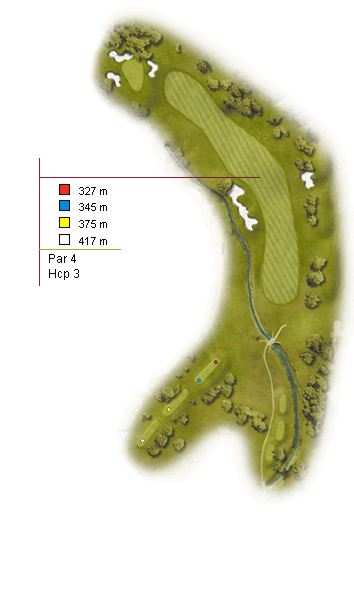 Con 390 metros, está considerado unos de los pares 4 más complicados entre los campos nacionales. La razón estriba en su marcado dog-leg a izquierdas, el agua lateral, inclinación de la calle y la presencia de pinos al otro lado del fairway.