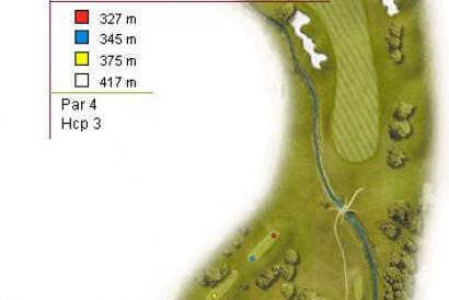 Por si fuera poco, un green en alto rodeado de varios bunkers, harán siempre necesario un potente driver con draw desde el tee y un hierro largo desde la calle.