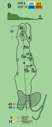 Con el tee situado en alto, si se acierta con el driver en la ancha calle queda un corto golpe para atacar un green situado en alto y protegido por un bunker al frente y otro a la derecha. Si se falla el green por la derecha queda un complicado aproach al mismo. Green con dos plataformas y en subida.