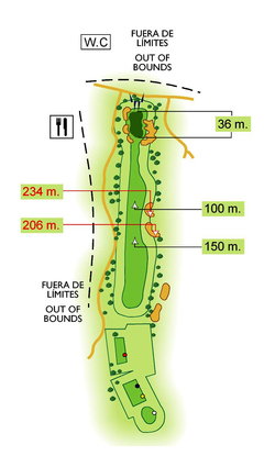 El fondo del green es de 54 m.
