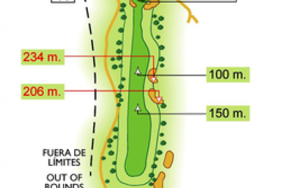 Par cuatro cuya dificultad está en un inmenso green con bastantes caídas.