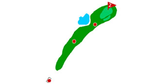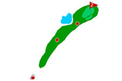 Primer hoyo en que el agua también juega. A 220 metros del tee de amarillas nos encontramos con un lago que hace estrechar la calle. Debemos por tanto tener cuidado con el driver y afrontar el reto de atacar el green con el lago por medio