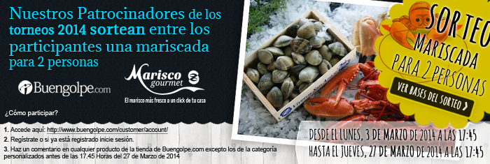 Nuestro patrocinador de los torneos 2014 WWW.MARISCOGOURMET.COM y Buengolpe.com sortean entre los participantes De 1 mariscada para 2 personas