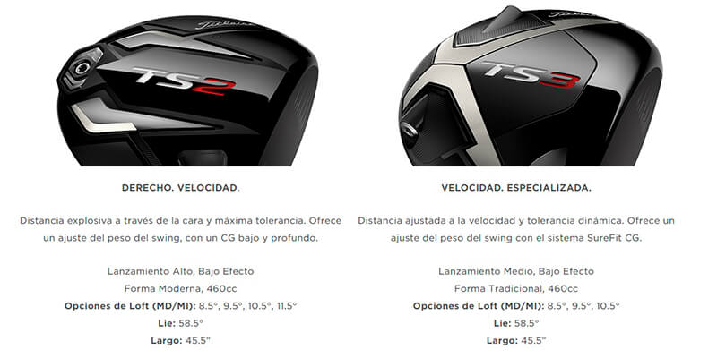 Los nuevos Drivers TS ofrecen dos diseños distintos que brindan más velocidad al juego. El TS2 permite realizar un swing agresivo con una máxima tolerancia en la cara del palo, mientras que el TS3 ofrece la posibilidad de ajustar la velocidad y la distancia mediante la tolerancia dinámica.