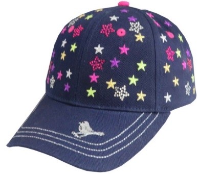 Gorras y viseras de diferentes dibujos como estrellas y pájaros.