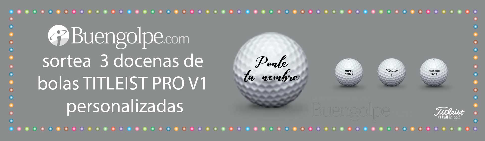 Buengolpe.com sortea entre los participantes 3 docenas de bolas TITLEIST PRO V1 personalizadas con tu nombre.